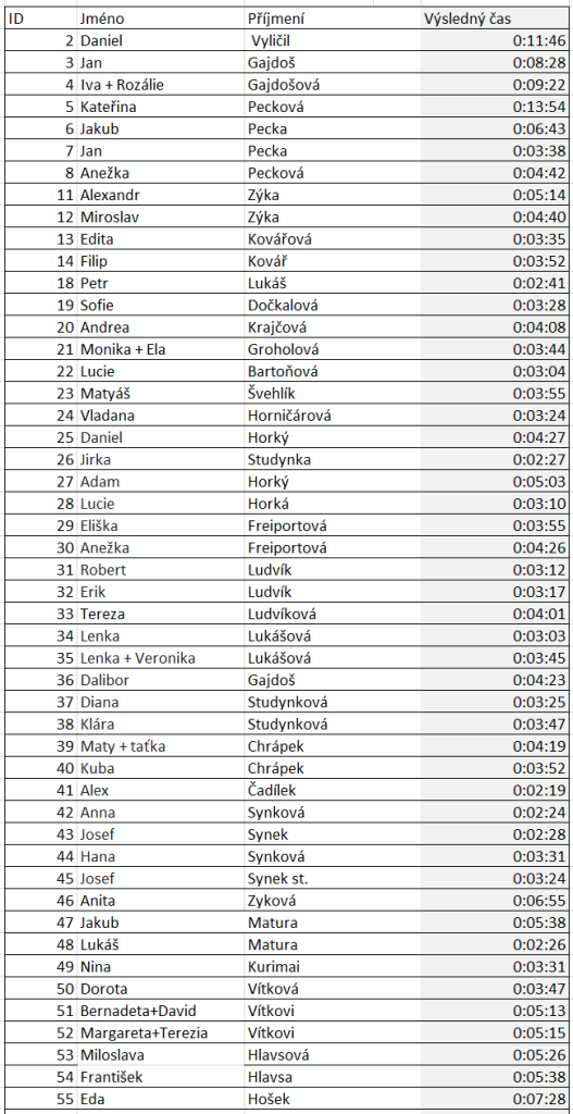 Zde naleznete výsledky závodu Family Race, který se konal v sobotu 18. 10. 2025.