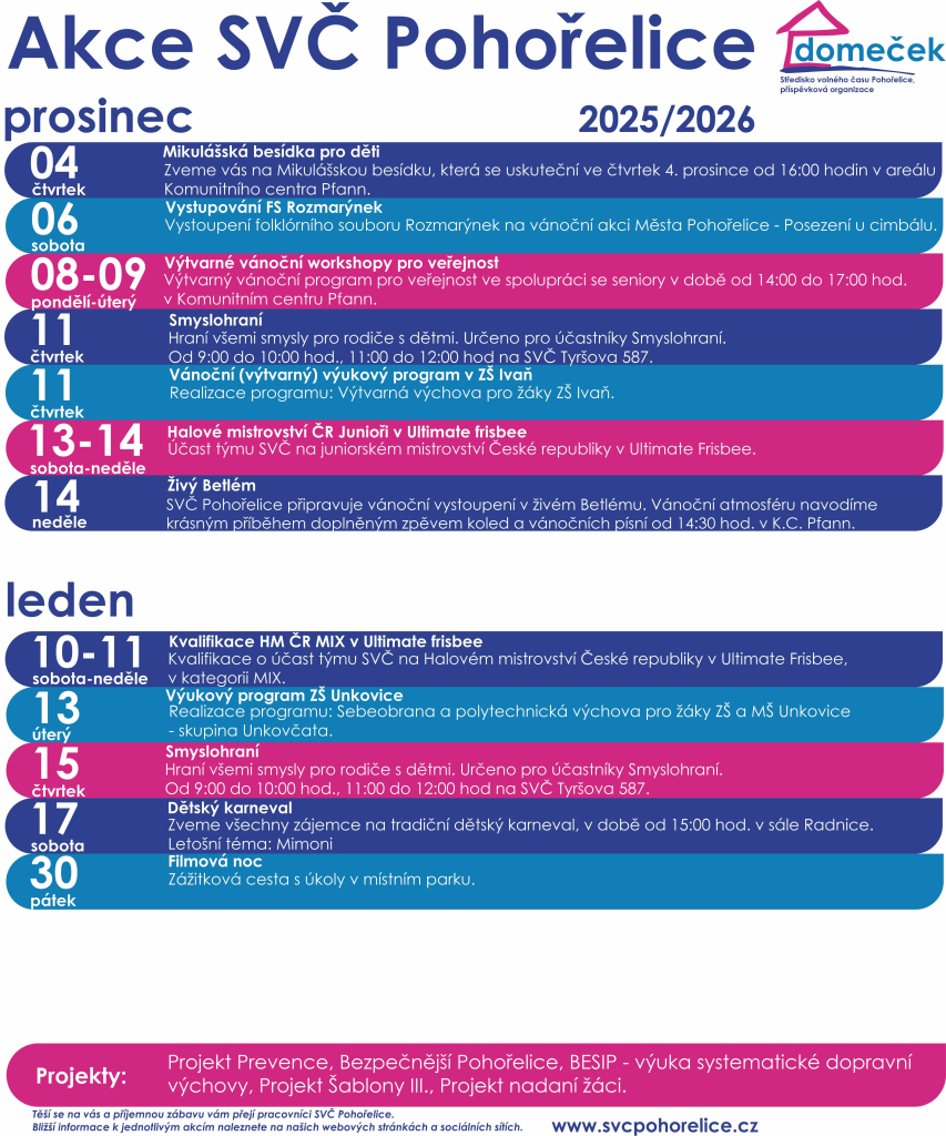 Pro vaše snadné plánování přinášíme seznam našich akcí. Pro pohodlnější plánování používejte náš sdílený google kalendář, kde naleznete všechny naše akce pro veřejnost i členy zájmového vzdělávání.